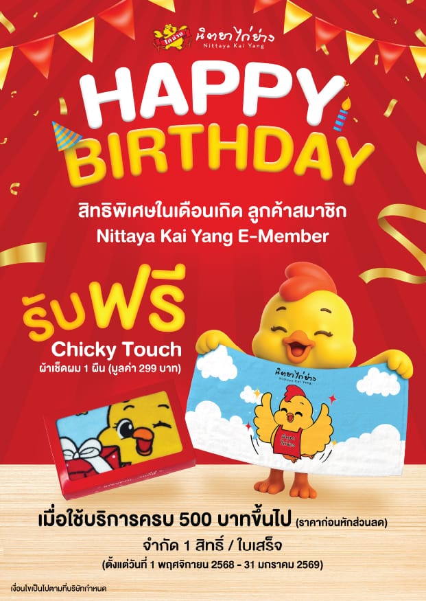 🎂 HAPPY BIRTHDAY! ลูกค้า E-Member ฉลองเดือนเกิดกับของขวัญสุดพิเศษจากนิตยาไก่ย่าง